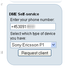 The typical use of the dmePushInstall tool is to let users, who have not yet been registered in the DME system, enter a phone number and select which device they have. Submitting the request will result in a software push from the DME server, effectively creating the user and his/her device in DME.