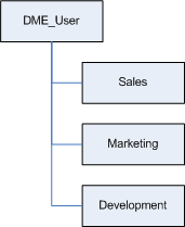 You then create a DME_User group, and add those subgroups into DME_User. This can be represented as follows: