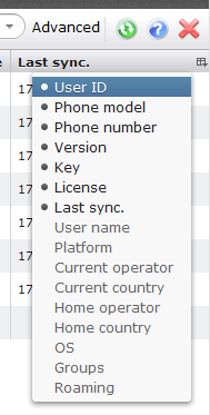 In this example from the Devices tab, you can choose to see eight more columns: Key, Platform, Current and Home operator, Current and Home Country, OS, Groups, and Roaming. Click each one to add it to the list of visible columns. Note that not all tables allow you to select the columns you want to see.