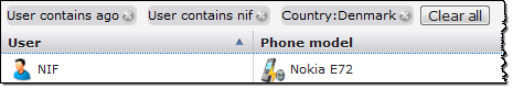 Now the list is shrunk to only display those among the selected users whose home country is Denmark.