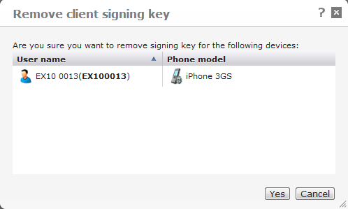Click this action to remove the client signing key from the currently selected device(s) in the list.