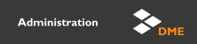 Clicking the DME Administration logo opens a window showing version number, build number, revision number, copyright information about the DME server, and a link to the Excitor website.