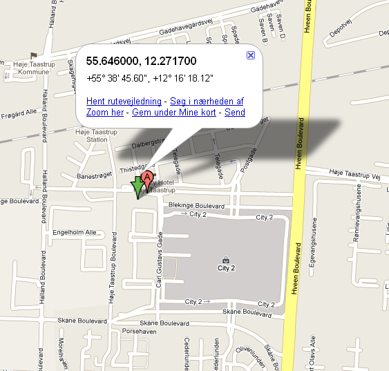 The green arrow shows the location. Click the arrow to view the exact coordinates and see the usual Google options.