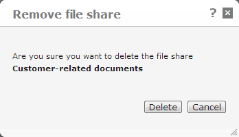 To delete an existing new file share, click Server > Server configuration > File browser, and then click Remove file share in the toolbar.