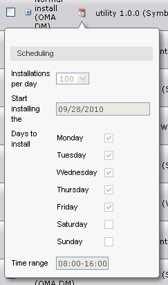 is shown in this column, it means that a schedule was defined for the current installation job. Point the mouse to the icon to view the schedule, for instance