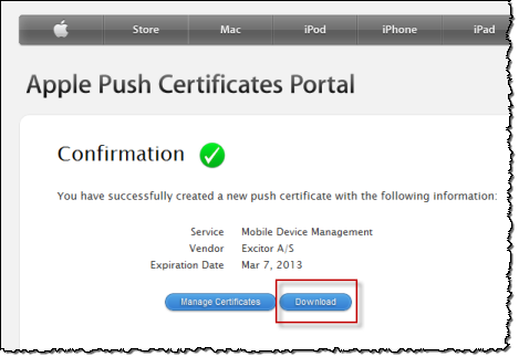 Important legal notice: Apple is very clear that a certificate can be installed on ONE server only. This means that if you for instance run a test server and a production server, you will need two separate certificates.