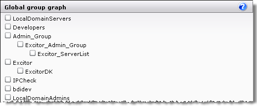 The graph reflects whether the setting Group graph mode in the Domain section of the connector setup panel is set to Full or Partial. If Full, all groups are shown. If Partial, only the groups that relate to the DME server are shown.